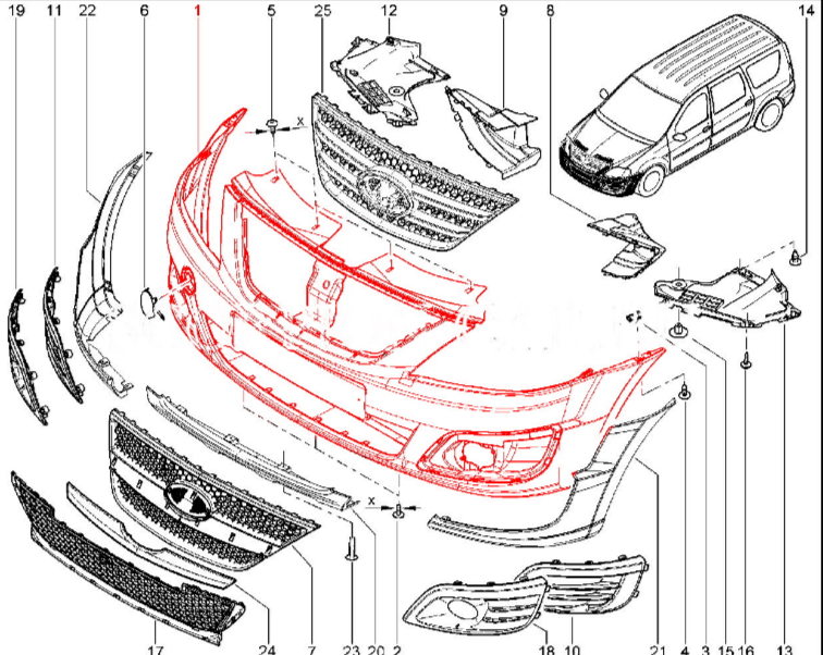 Передний бампер Лада Ларгус Cross (тисненный поастик, шагрень) АвтоВАЗ Оригинал 8450009387